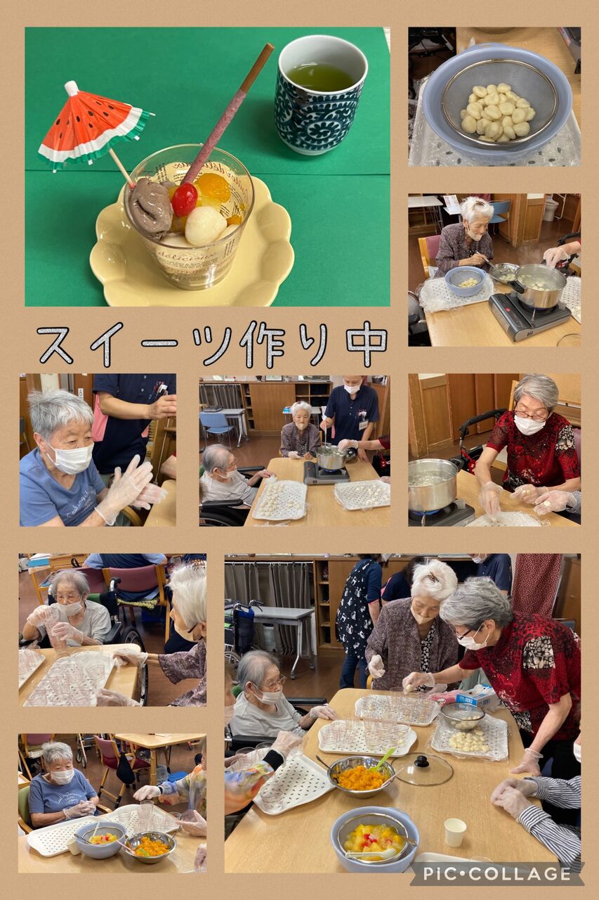 白玉粉と豆腐を混ぜて丸めて茹で冷水に取ります