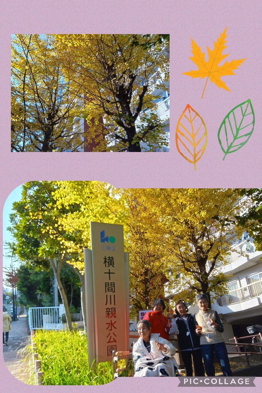 日差しが暖かく感じるこの日、歩行訓練も兼ねてホームの近く横十間川親水公園へお散歩です