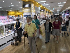 歩行訓練の効果を身近に感じてもらえるよう、ヨーカドーの中も