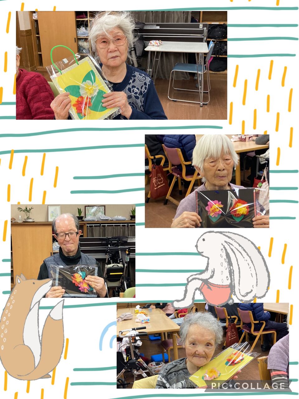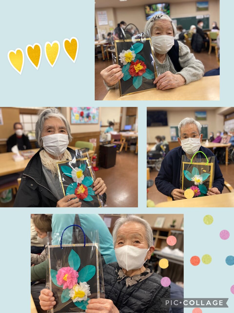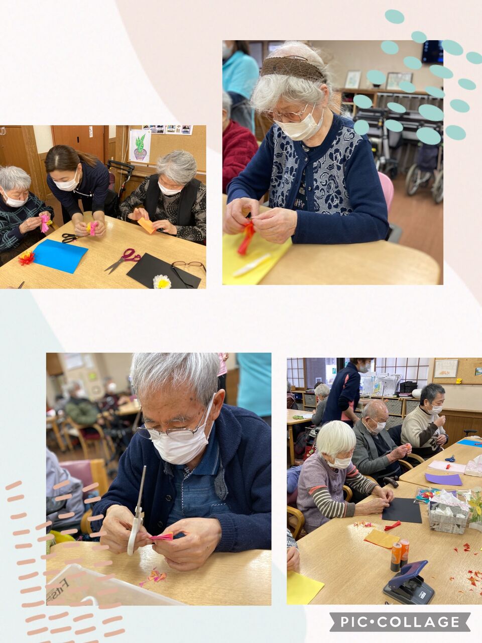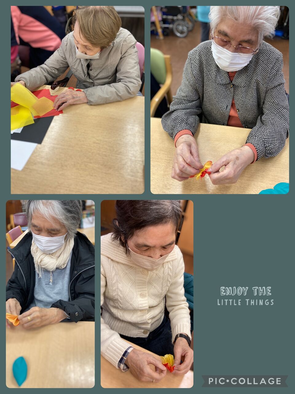 赤や白、黄色の紙などを使って何かを作っておられますが