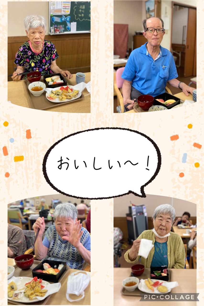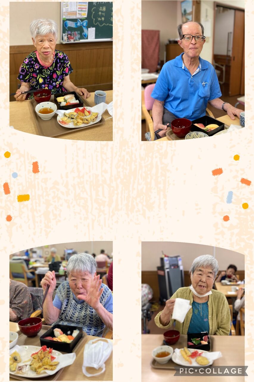 お昼はお祝いということでお寿司🍣にてんぷら🦐