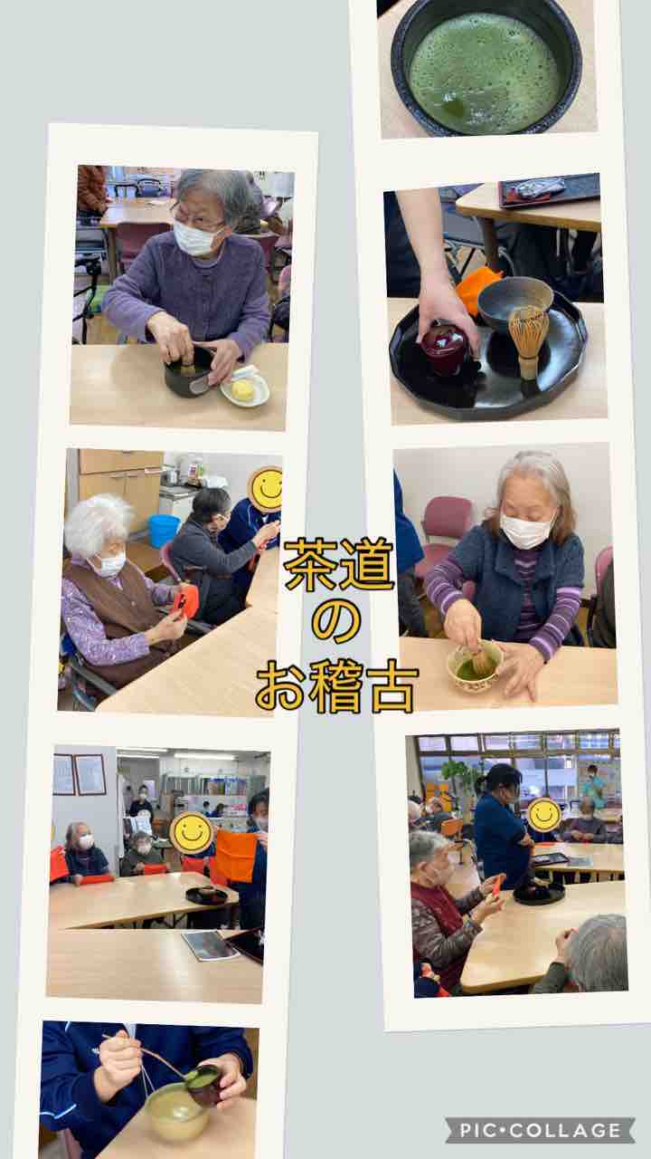 「お抹茶が飲みたい」という声も多く、茶道を嗜んでいた利用者様もいらっしゃるので今月は初釜を行いました。