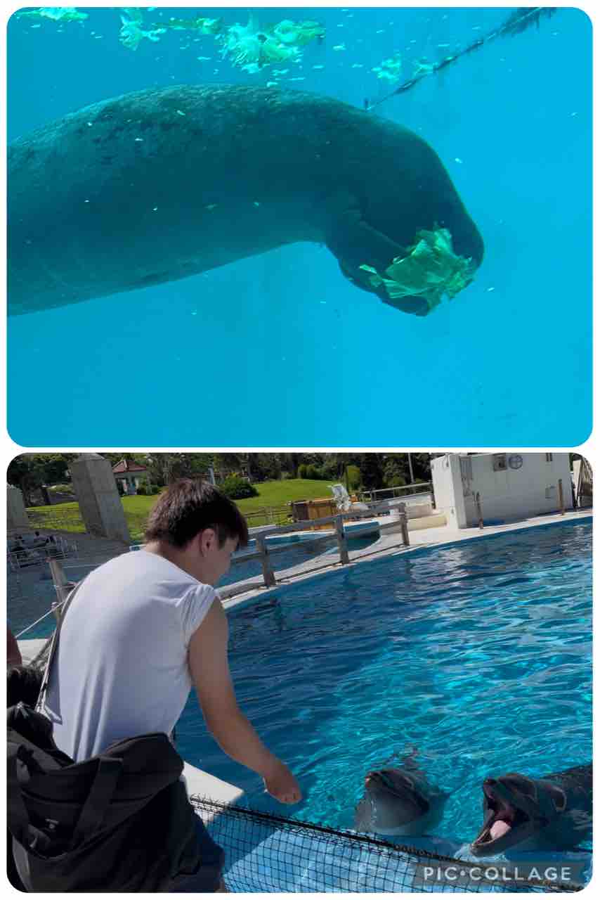 • イルカにエサやりして癒される私🐬