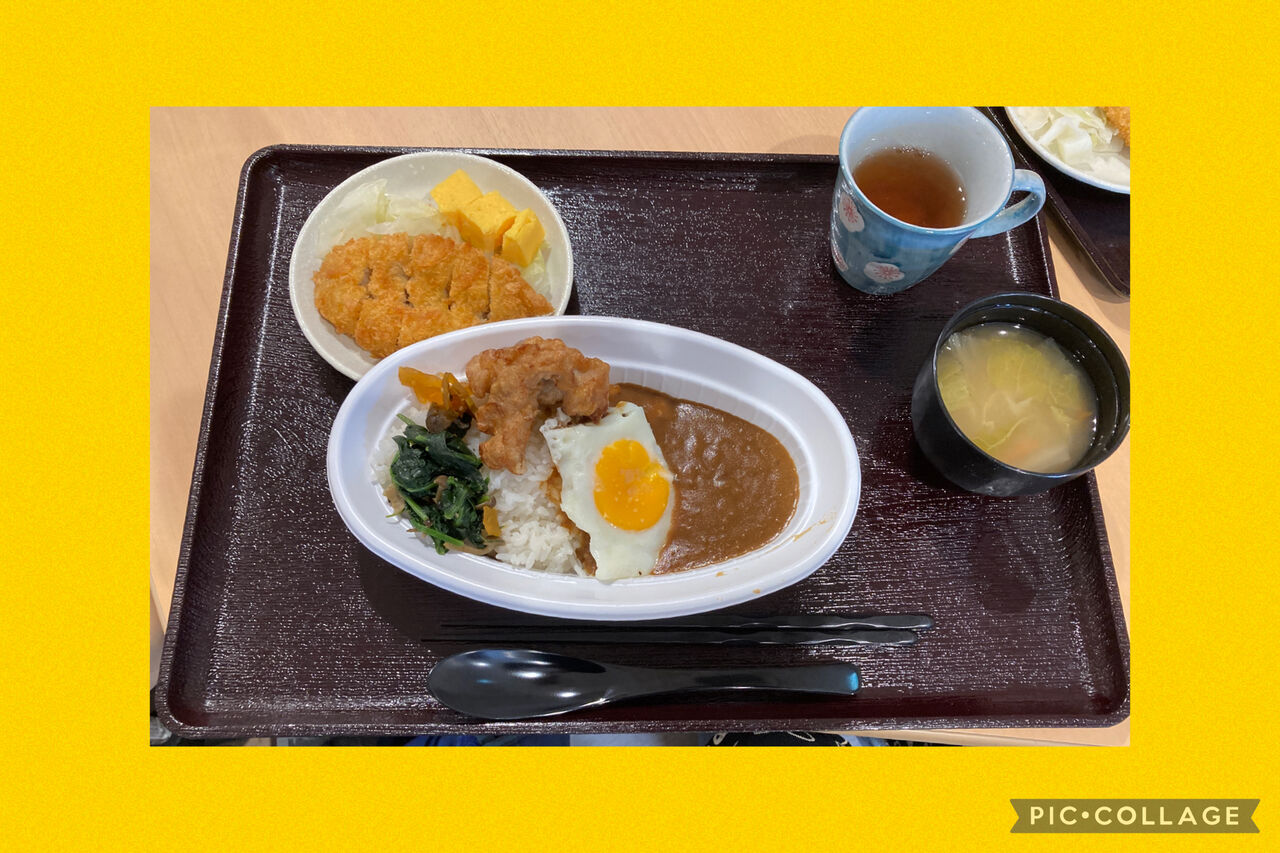 トッピングには…唐揚げ・目玉焼き・ほうれん草しめじソテー